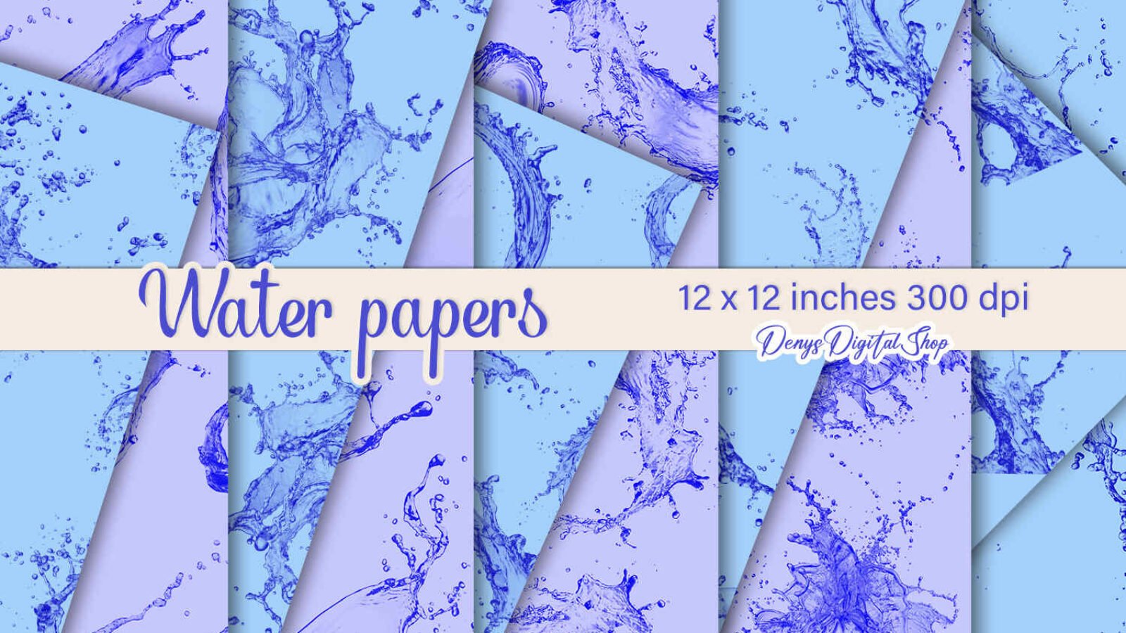 Water Scrapbooking Papers Pack and Cards for Printable